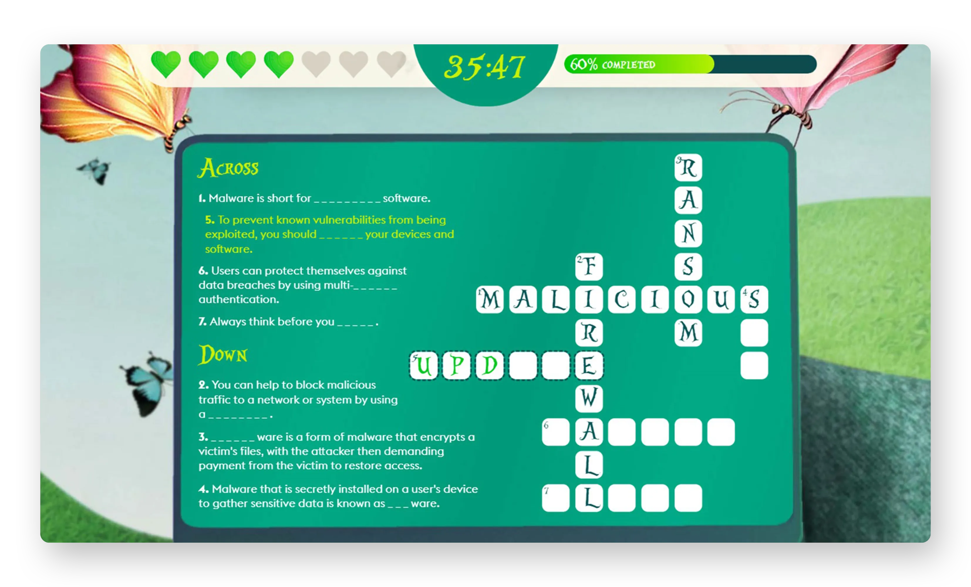 - Malware Mania: crossword puzzle with cyber security clues and answers