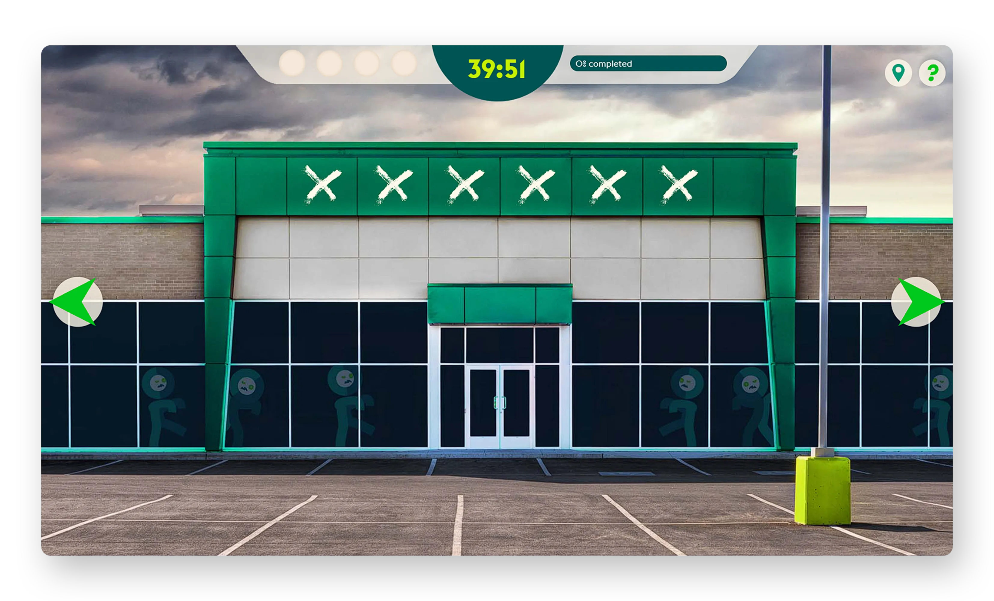 - CCTV puzzle: players watch a series of videos and click when they spot a hazard within the scenes